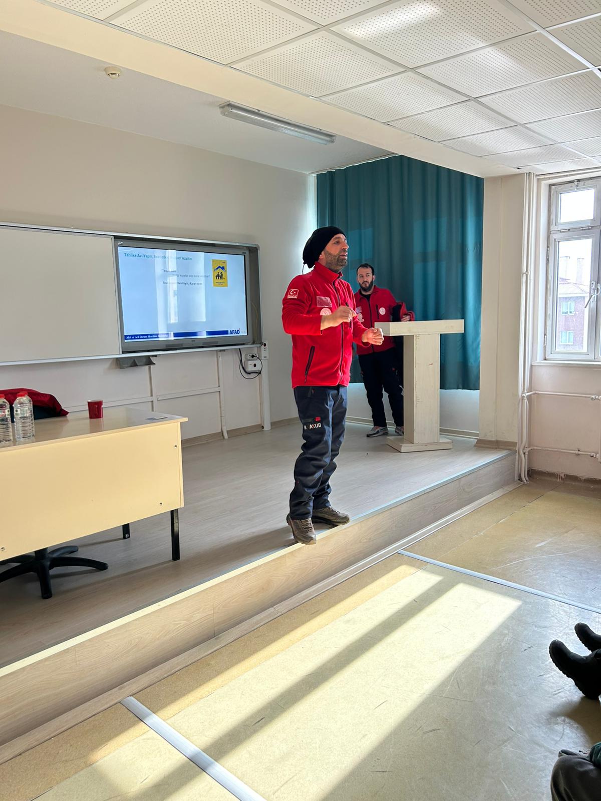 Program çerçevesinde 80 öğrenci ve 15 öğretmene “Temel Afet Bilinci Eğitimi” verildi. Eğitimde; afet öncesinde alınması gereken önlemler, afet anında doğru davranış şekilleri ve afet sonrasında yapılması gerekenler hakkında bilgilendirme yapıldı. Özellikle deprem anında “çök–kapan–tutun” uygulamasının önemi vurgulandı.